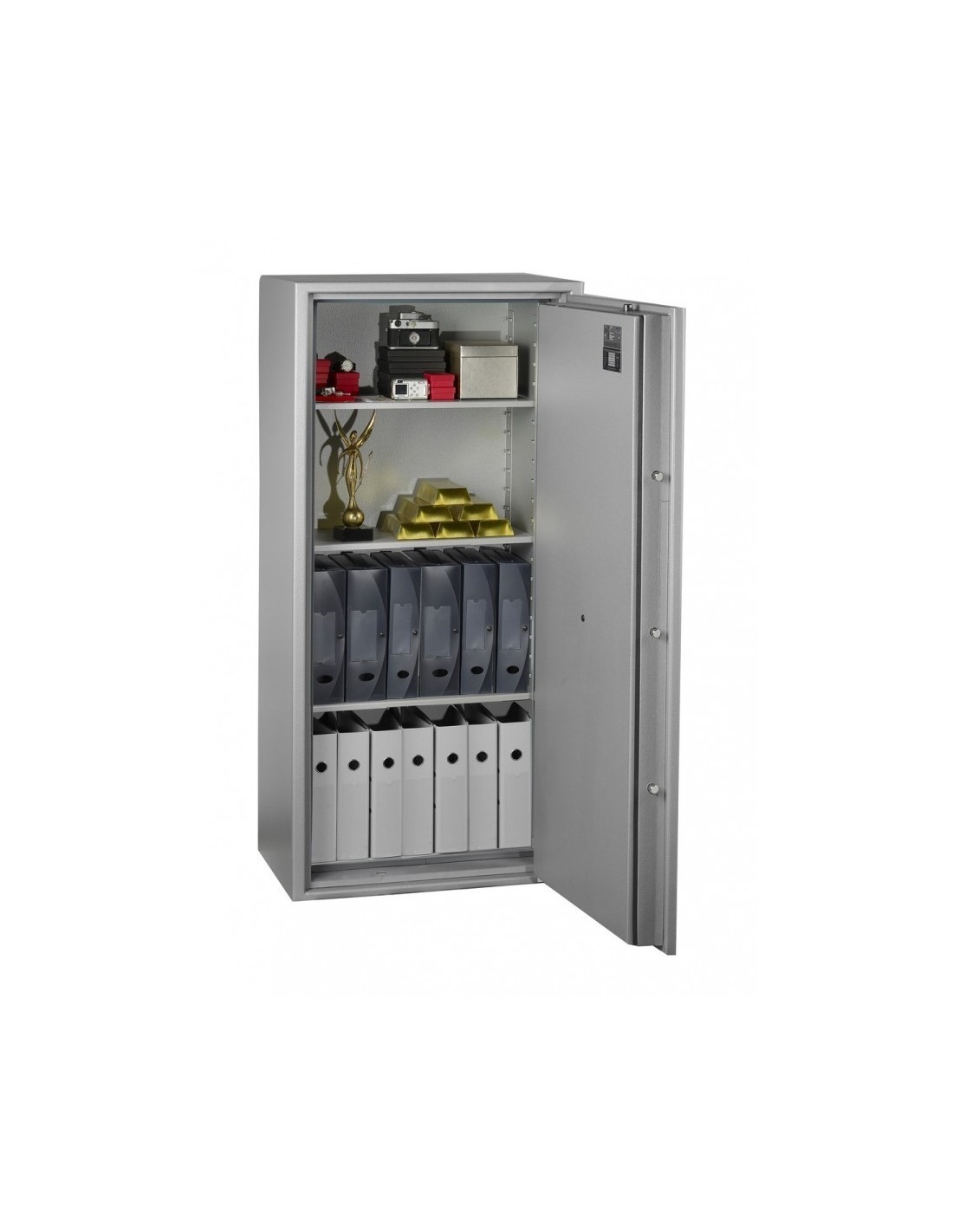 En effet ,le modèle PROTECT DUO 291, Hartmann l’a soumis aux règles de la norme Européenne Standard EN 1047-1/S60P . Cet équipement robuste qui est construit par parois de manganèse imperçables est capable de résister au feu et aux attaques par effraction grâce à sa porte.