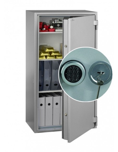 Le coffre fort ignifuge Hartmann PROTECT DUO 253 Classe 1 Serrure À Clés + Électronique, résiste contre le feu pendant une heure d’où il permet la protection de tous vos documents en papier et vos objets de valeur.