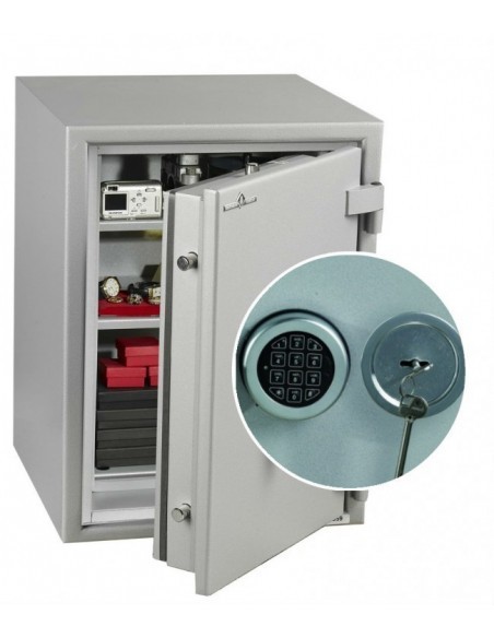 Le coffre fort ignifuge Hartmann PROTECT DUO 60 Classe 1 Serrure À Clés + Électronique , résiste contre le feu pendant une heure d’où il permet la protection de tous vos documents en papier et vos objets de valeur.