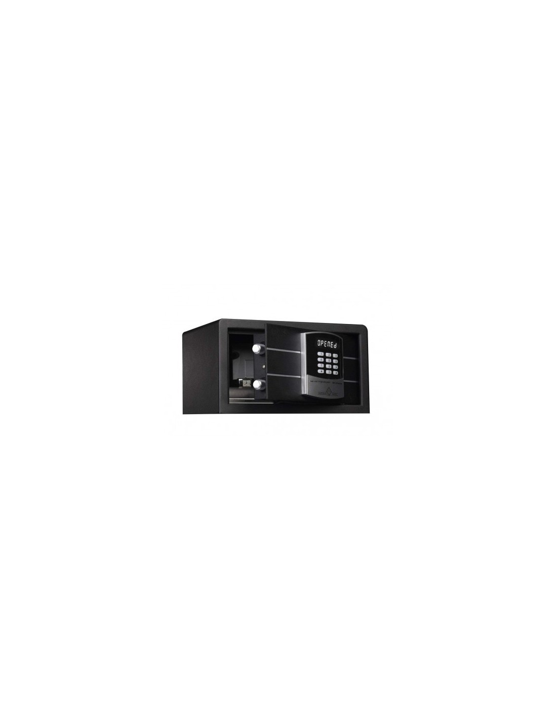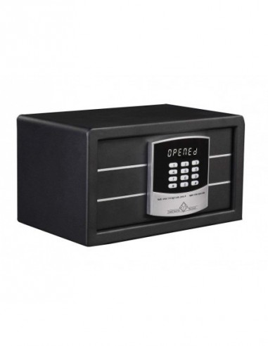 Caractéristiques du coffre-fort : - Coffre-fort pour hôtel et hôpital. - Pour documents ou objets. - Serrure électronique. - Code maître et Code utilisateur. - Dim. externes : 180 (H) x 320 (L) x 200 (P) mm. - Capacité : 12 litres.