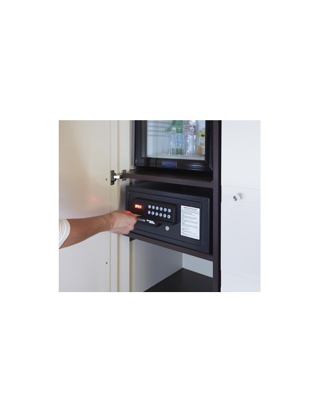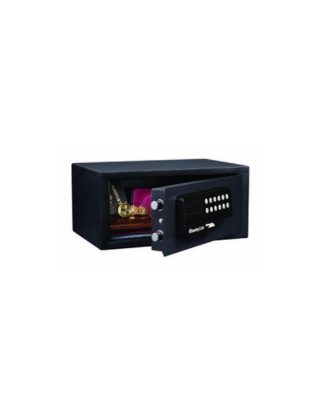 Le Coffre-fort avec ouverture à carte - format M H060ES à combinaison électronique SentrySafe offre plusieurs options de déverrouillage : par clavier numérique ou par lecteur de carte. La composition en acier massif, le système de porte anti-effraction et les 2 pênes mobiles assurent une protection optimale contre toute tentative d'accès non autorisée. Ce modèle est idéal pour les hôtels.