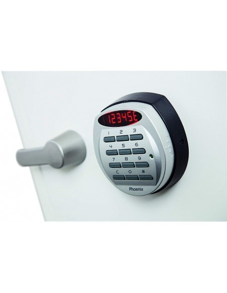 En effet ,le modèle TITAN, Phoenix l’a soumis aux règles de la norme International Standard NT FIRE 017 60. Cet équipement robuste construite des plaques en acier galvanisé est capable de résister au feu et aux attaques par effraction grâce à sa porte incurvée encastrée et étanche à l’air avec une serrure électronique de haute sécurité de pointe avec affichage LED clair. Afin de renforcer la sécurité du coffre fort phœnix titan fs1282e, sa serrure dispose également d’ un double contrôle, code caché et code brouillé.