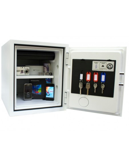 Dans le but de garantir une protection optimale, le coffre fort phœnix titan fs1282k est testé par MTC - DIP120 - 60DMA norme au feu, fourni 60 minutes de protection contre le feu pour médias numériques, DVD, clefs USB et cartes mémoire. Il est equipé d’une serrure à clef de haute qualité fournie avec deux clefs.