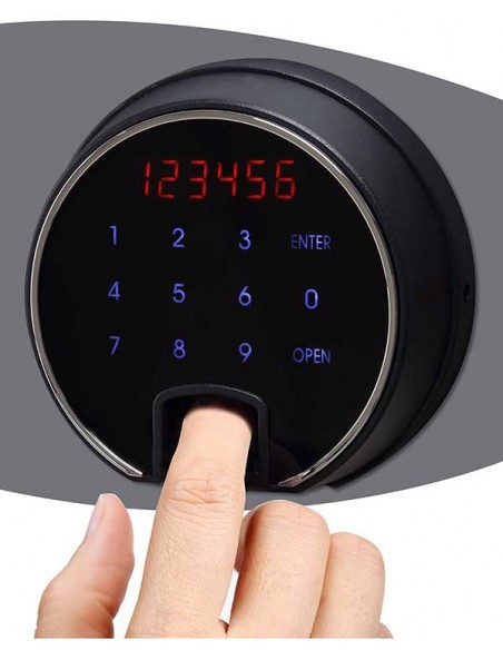 - VERROUILLAGE Équipé d’un clavier à sécurité tactile avancé et d’un verrou d’empreinte digitale avec affichage à DEL clair, alarme interne, contrôle double, code caché et code brouillé pouvant être programmé en standard avec un maximum de 128 empreintes digitales.