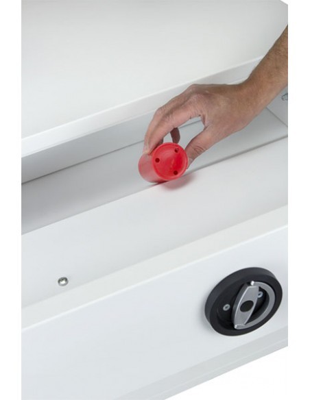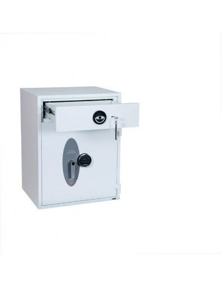 - TIROIR DE DÉPÔT: Le iroir de dépôt est sécurisé par plusieurs pênes et se verrouille avec une serrure à clef de haute sécurité à double panneton VDS Classe 1.
