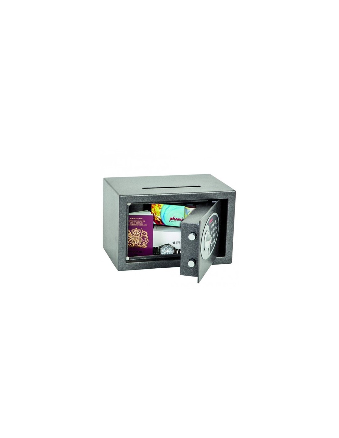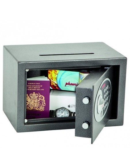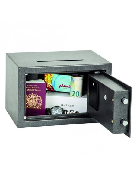 LA SERIE PHOENIX VELA AVEC FENTE DE DEPOT est conçue pour un usage à la maison ou au bureau pour le rangement d’objets de valeur, argent liquide et documents importants. Grâce à sa serrure à clef de haute qualité ou sa serrure électronique facile d’utilisation, il est idéal pour de multiples applications