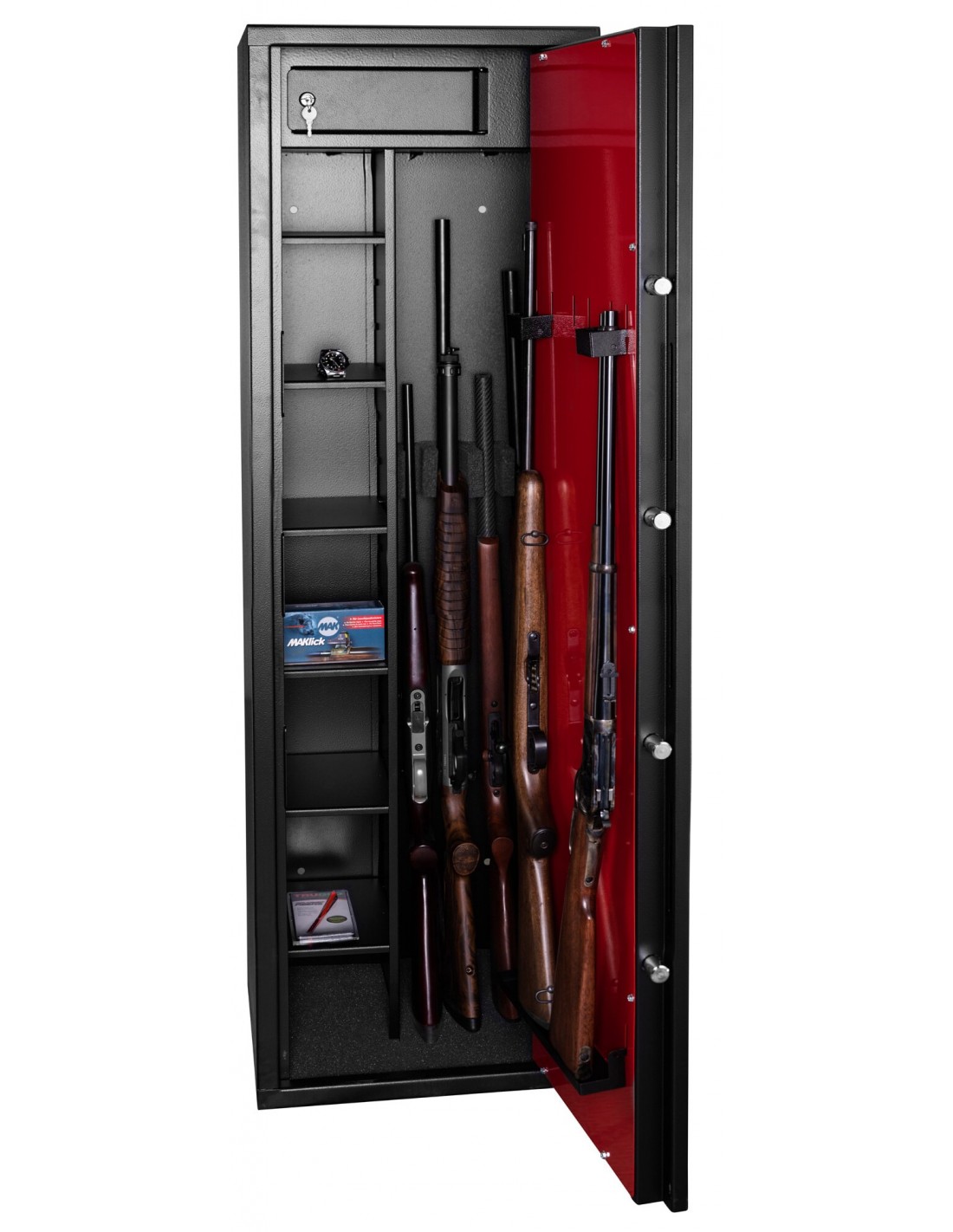 Dans le cadre de la détention d'armes de catégorie B, il est obligatoire de posséder un coffre pour maintenir les armes en question hors de portée des tiers personnes. D'une façon générale, il est fortement conseillé de mettre ses armes, quelques soient leurs catégories (B, C ou D) hors de portée des enfants et d'éventuels intrus ou voleurs en les stockant à l'abri dans un coffre pour armes. Ce coffre doit impérativement être fixé au sol ou au mur.