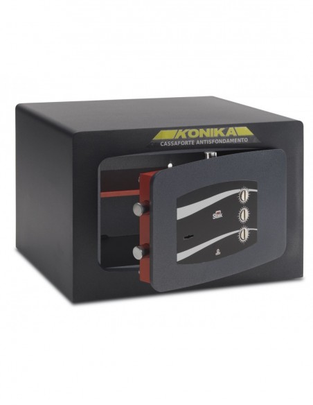 Le coffre fort à poser mobile serrure à clef combinaison trois cadrans série 3240tk stark 3244tk est un coffre de sécurité moderne. Il est conçu pour répondre à tous vos besoins soit professionnels ou d’habitat.