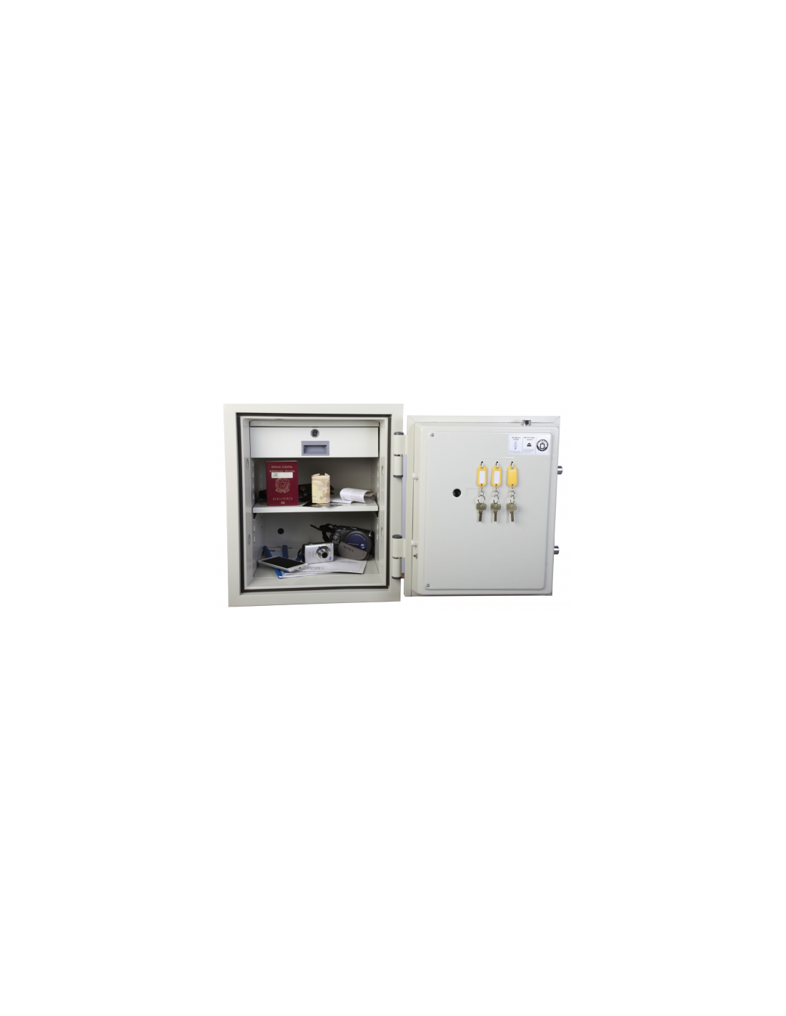Le coffre fort Technomax serrure à clé double panneton 80 ngs ignifuge de la haute marque Technomax également appelé coffre fort anti-feu est la solution idéale pour une protection optimale de vos biens de valeur contre les incendies et l'eau d'extinction du feu .