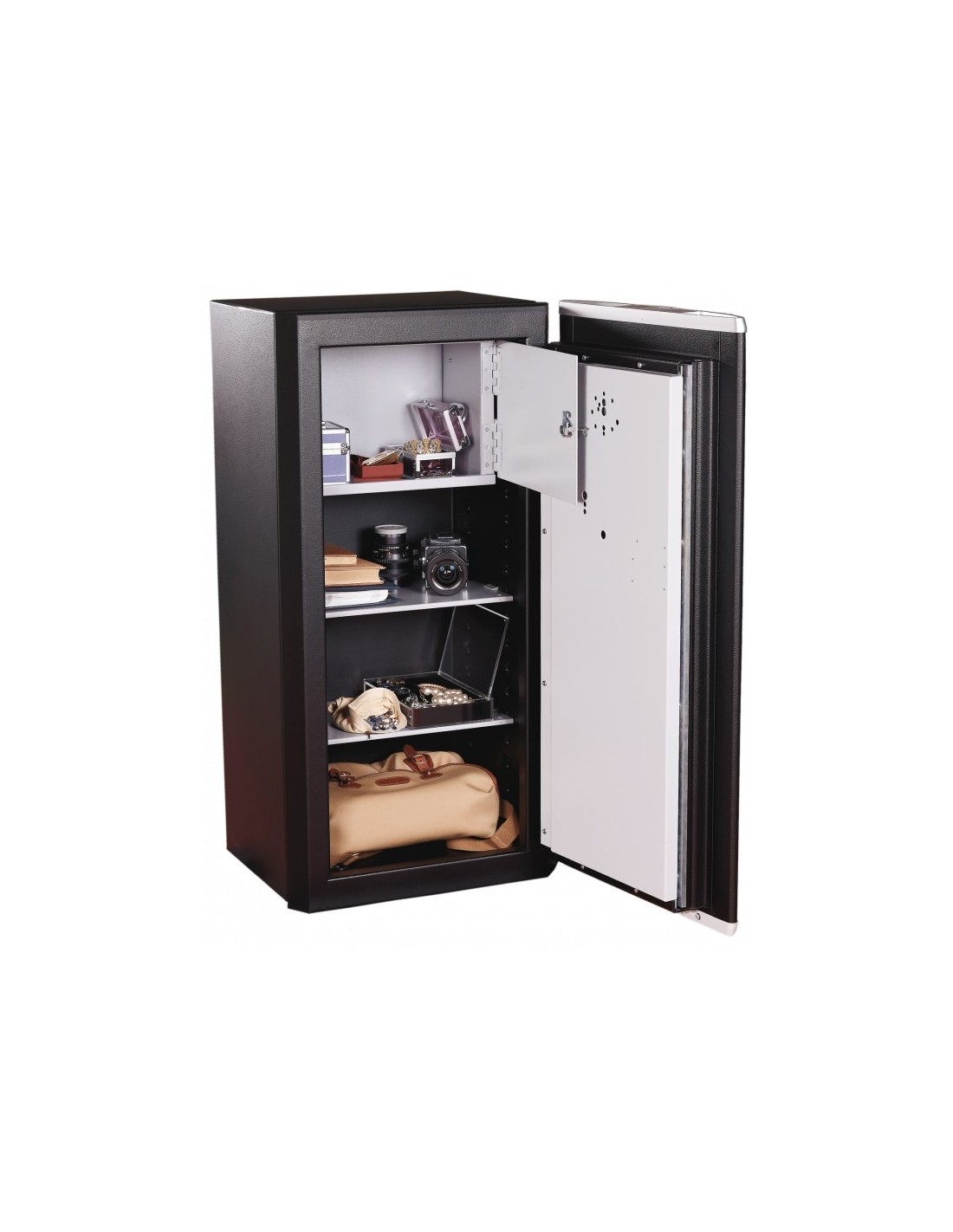 Le coffre fort Carena II 80 se différencie par ses lignes épurées et son design élégant. Facilement manipulable grâce à sa ligne ergonomique, il garantit une protection maximale contre l'effraction. Déclinée en six volumes (40 à 370 litres).