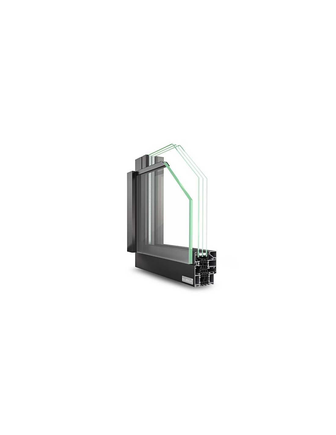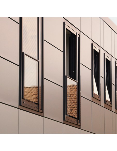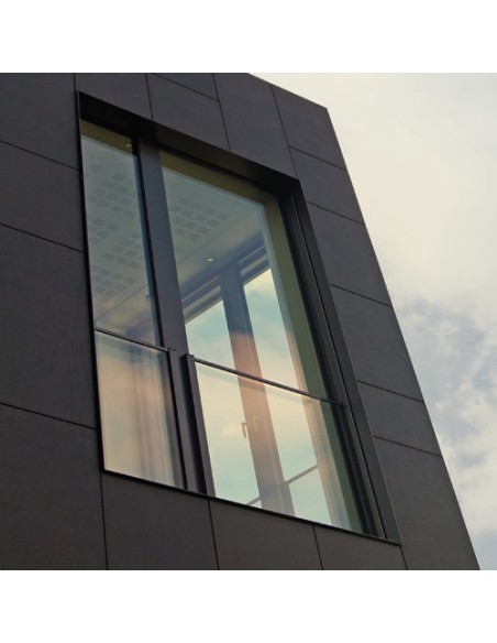 Le vitrage de sécurité à la chute est posé sur l'encadrement de fenêtre d'une manière pratiquement invisible à l'aide de profilés porteurs verticaux sans modifier l'optique d'ensemble de la façade. Dans cette version, des largeurs de vitrage jusqu'à 3.000 mm sont possibles. En complément, HUECK offre également une version avec des baguettes de maintien horizontales pour des largeurs de vitrage jusqu'à 1.600 mm. Pour protéger l'arête supérieure de vitrage, HUECK a conçu comme premier fabricant une solution contrôlée et particulièrement discrète avec un profilé plat pratiquement invisible.