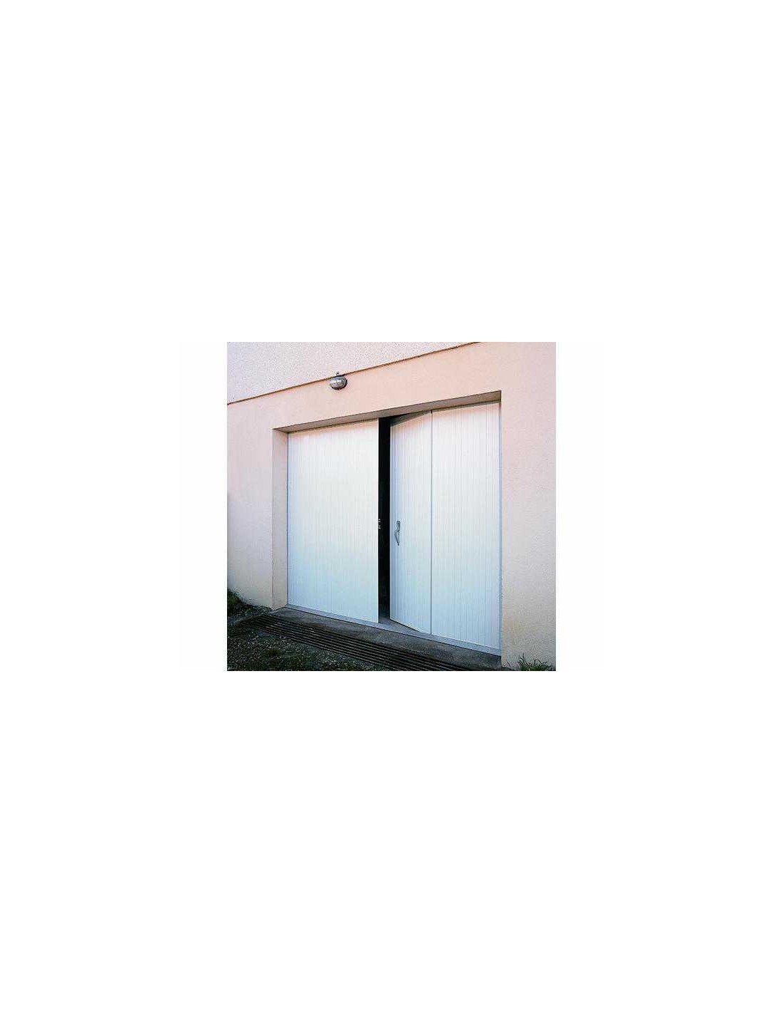 Tablier composé de lames PVC verticales clippées. Les deux panneaux centraux s'ouvrent pour une entrée piétonne.