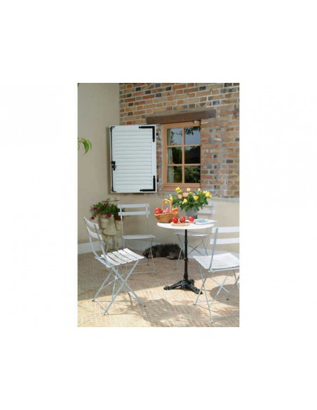 Fermeture du volet par espagnolette blanche ou noire.